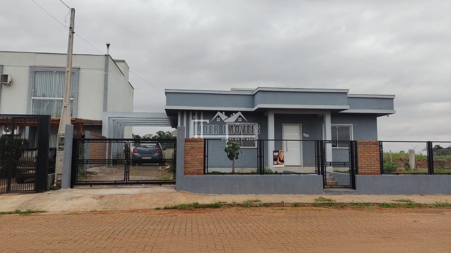 Descrição › Linda casa de esquina localizada no bairro Floresta, em Lajeado. Conta com 2 dormitórios, sendo 1 suíte, churrasqueira, garagem para 2 carros, está cercada e murada. Possui jantar e estar integrados, cozinha, área de serviço e banheiro social. Pátio amplo com acesso pela frente ou pela lateral. Área privativa de 93,94m² + pergolado. Esta casa é perfeita para quem deseja morar em um ambiente tranquilo e seguro.