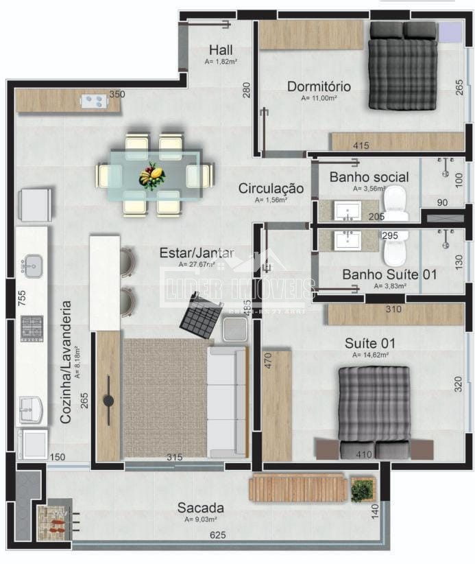 2 Dorm. | 2 Suíte(s)