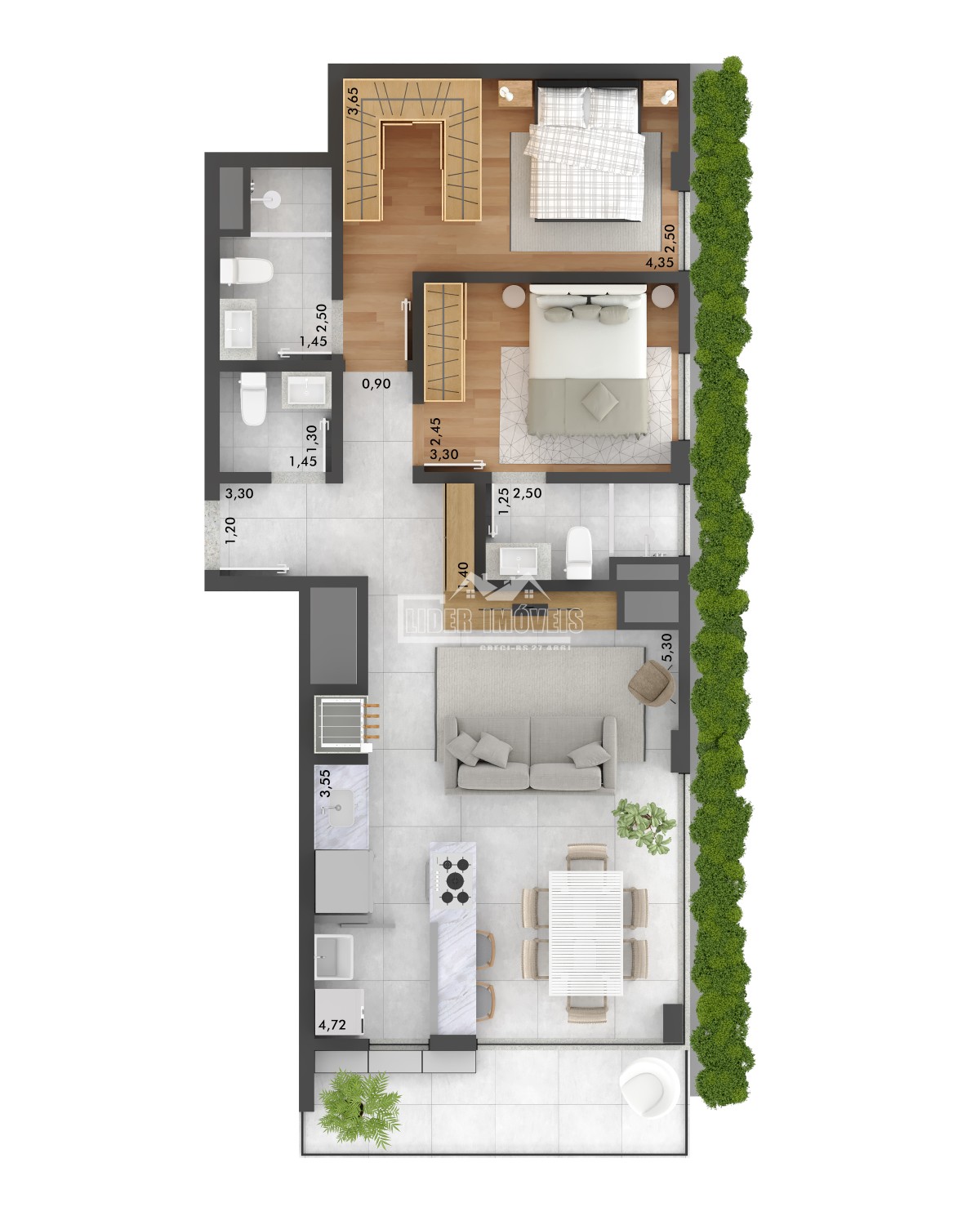 Descrição › Apartamento incrível disponível para compra, ainda na planta e com previsão de entrega para Abril de 2028 esse projeto vai te encantar. O imóvel conta com 2 suítes em um prédio com academia, piscina e salão de festas. Unidades a partir de R$545.000,00. Venha conhecer este projeto com a Líder!!
