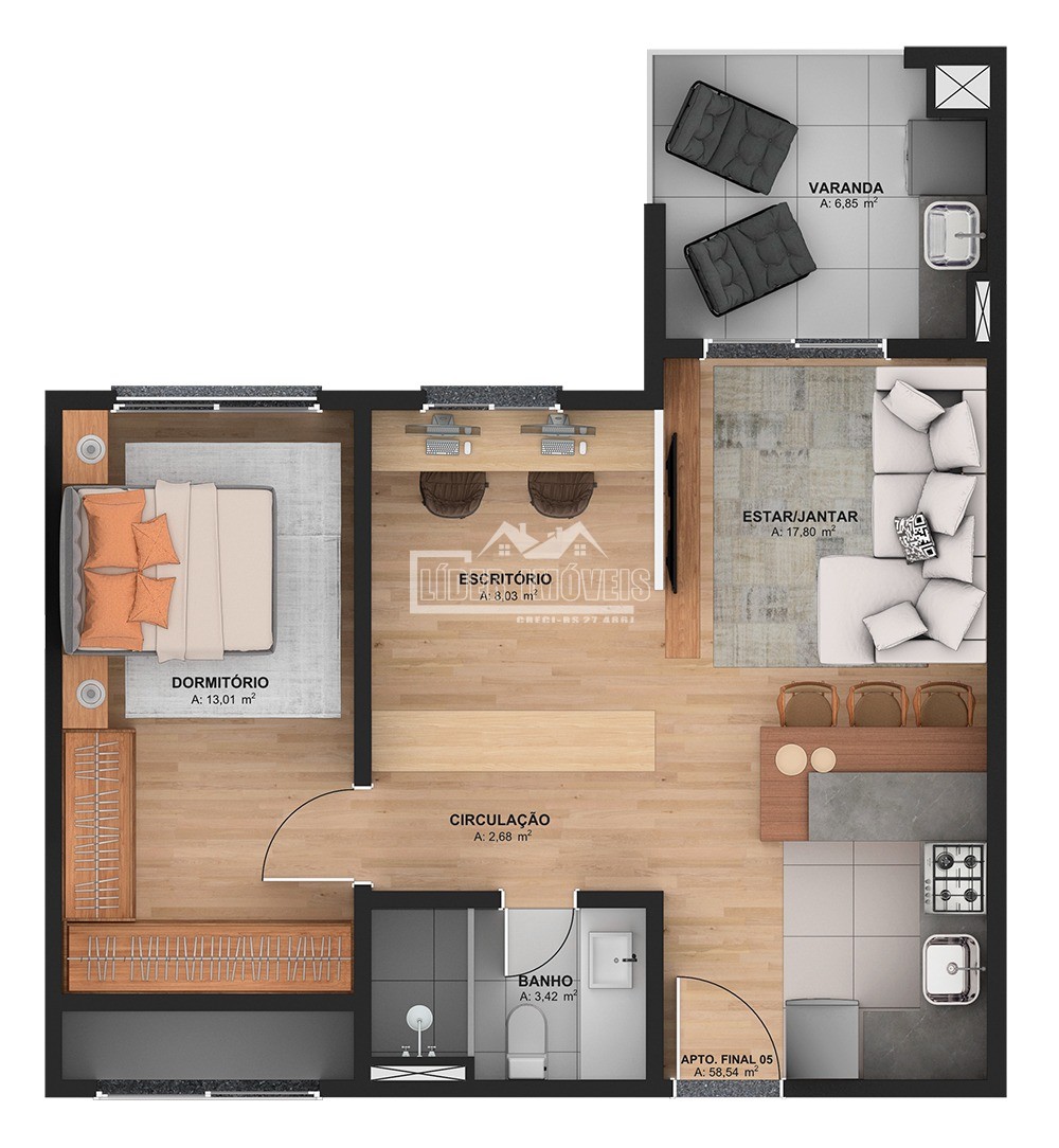 Área Privativa › 58,54m²