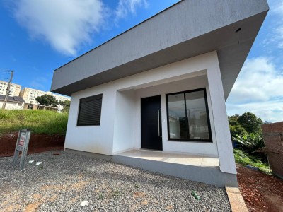 Descrição › Encantadora casa à venda no bairro Campestre em Lajeado. Com dois dormitórios, banheiro, e duas vagas de estacionamento, este imóvel possui uma área privativa de 84m². Com esquadrias em madeira, a casa conta com uma área de serviço separada, churrasqueira, pátio, e portão eletrônico. Pronta para morar, essa casa é perfeita para quem busca conforto e praticidade. Agende uma visita e venha conhecer seu novo lar!